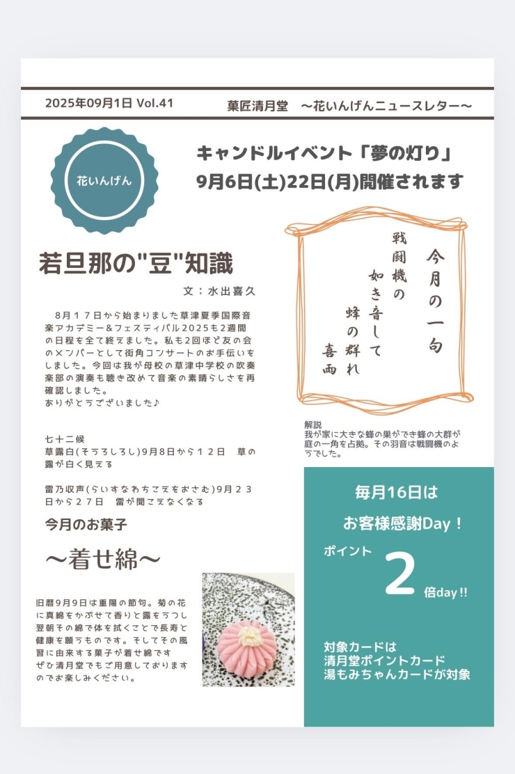 お豆の小宿花いんげんの姉妹店、清月堂からニュースレターが届きました ぜひご覧下さい